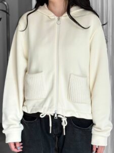 「MONCLER」のオフホワイトフーディは、