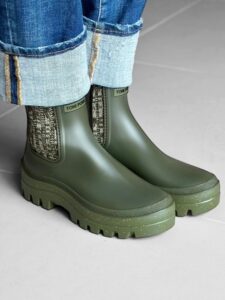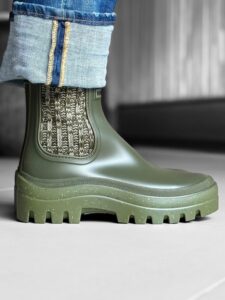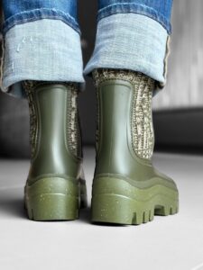 サイドゴア部分に配した 霜降りのオリーブカラーのゴムが