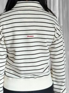 オフホワイトベースに、ブラウンカラーのボーダーが