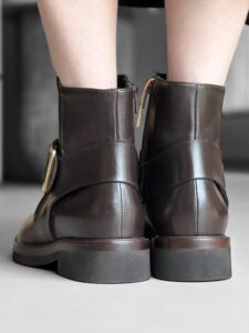 深い ブラウンカラーのショートブーツは、