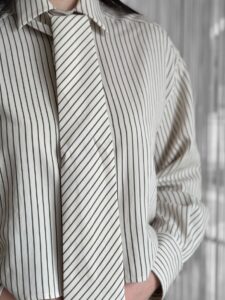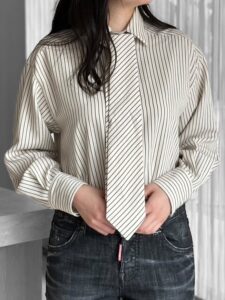 優雅にタイを垂らしたり、リボン結びにしたりと