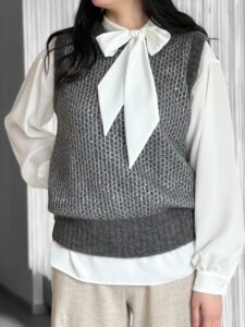 初秋、ブラウスに、薄生地の気品あるベストを