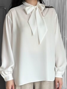 「不変のフェミニンな ボータイブラウス」