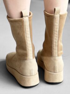 「潔くワントーンで纏めたショートブーツ」